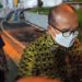 Sehelai kembang yang mulai menguning terancam gugur karena beratnya embun