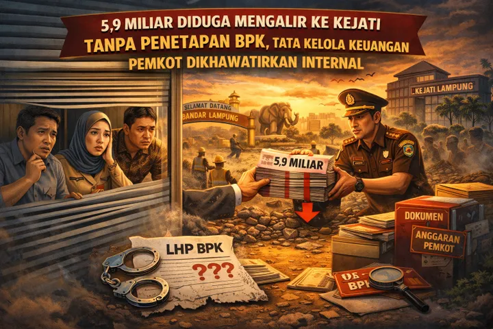 DJADIN MEDIA- Dugaan aliran anggaran senilai Rp5,9 miliar dari Pemerintah Kota Bandar Lampung untuk pembangunan gedung Kejaksaan Tinggi (Kejati) Lampung memunculkan kekhawatiran serius di internal pemerintahan daerah. Dana tersebut disebut-sebut telah dicairkan tanpa adanya penetapan kewajiban daerah oleh Badan Pemeriksa Keuangan (BPK), sehingga berpotensi menyalahi tata kelola keuangan negara.