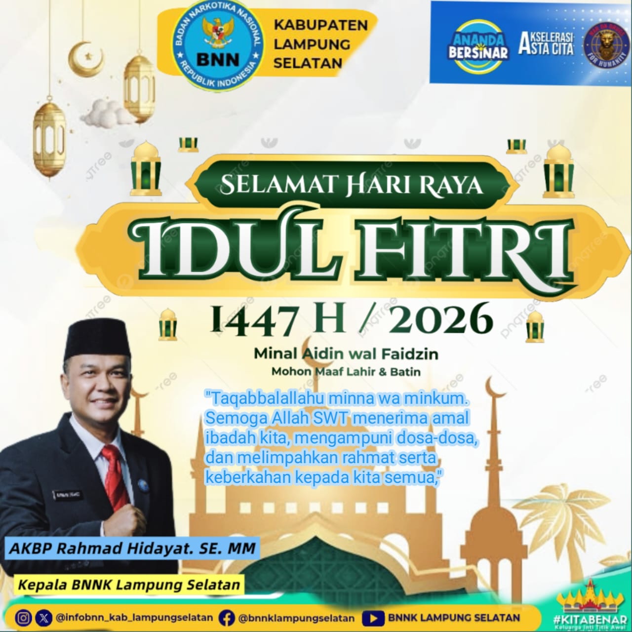 “Selamat Hari Raya Idulfitri 1447 H. Mohon maaf lahir dan batin. Mari rayakan kemenangan dengan hidup sehat, terhormat, dan tanpa narkoba,” pungkasnya.***