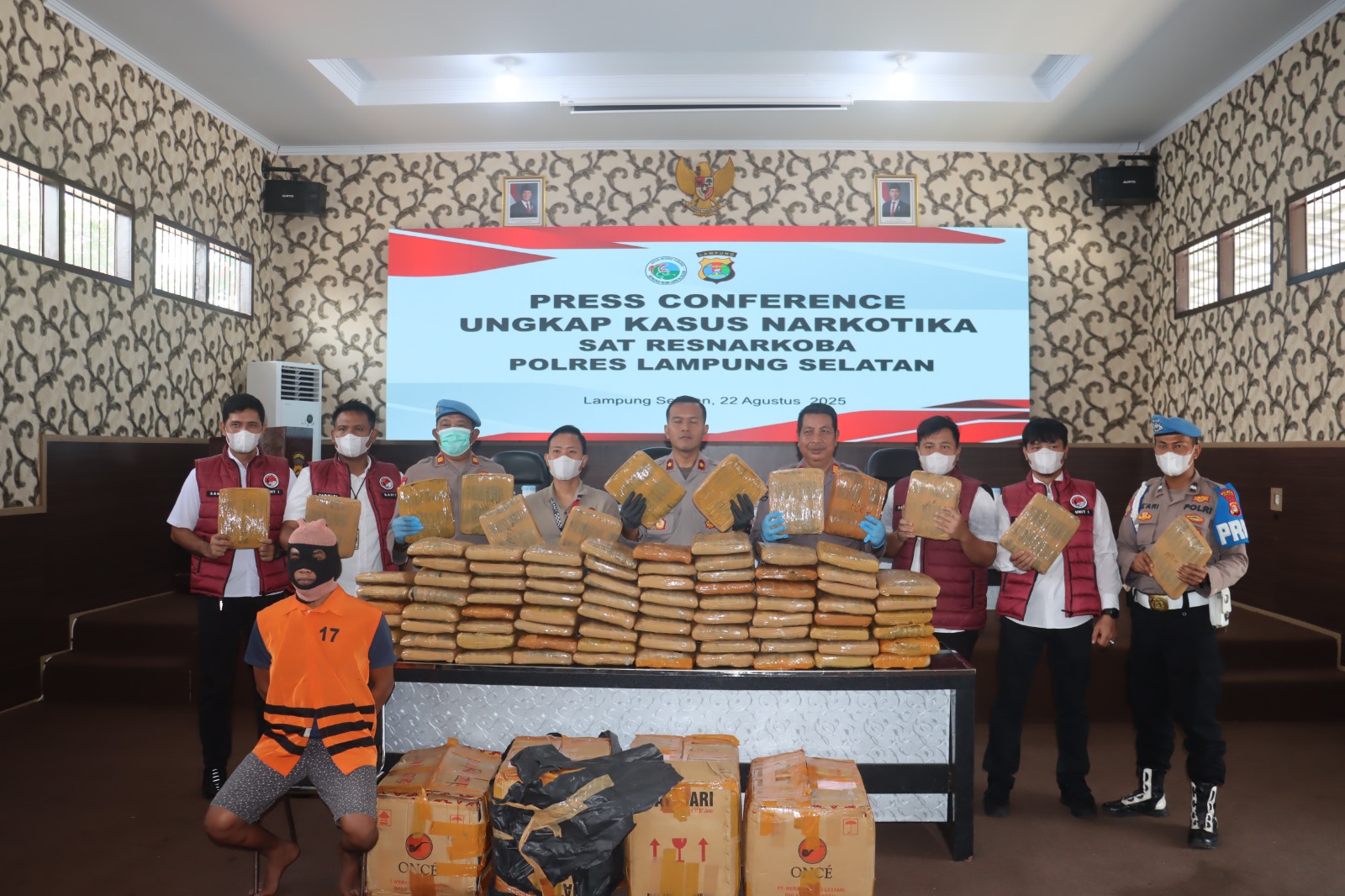 DJADIN MEDIA– Satuan Reserse Narkoba Polres Lampung Selatan berhasil menggagalkan upaya penyelundupan narkotika jenis ganja seberat 90,36 kilogram di Pelabuhan Bakauheni, Kamis (31/7/2025) dini hari. Operasi ini menegaskan komitmen aparat kepolisian dalam memberantas peredaran narkoba di wilayah Lampung Selatan.