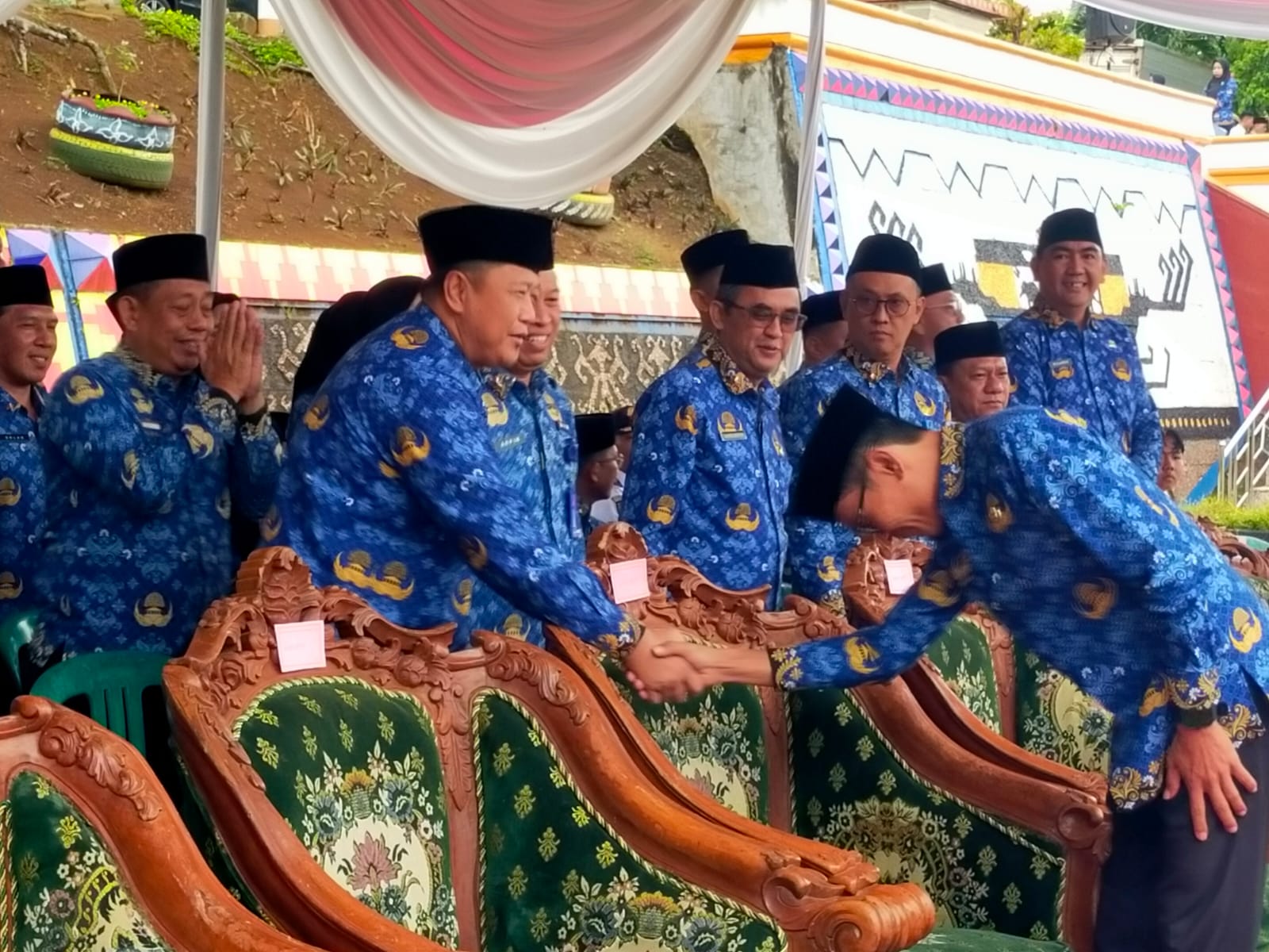 Kegiatan ini dihadiri jajaran Forkopimda, mulai dari Dandim 0424/Tanggamus yang diwakili Pasilog Kapten Cku Saleh Umar, Kapolres Tanggamus diwakili Kasat Binmas AKP Bambang Purwadi, Kajari Tanggamus, perwakilan PN Tanggamus Hakim Hendra Wahyudi, perwakilan PA Tanggamus Dr. Ahmad Kholil R., S.Ag., M.H., Danpos TNI AL Lettu Laut Ahmad Yani, anggota DPRD, serta para asisten, staf ahli, kepala OPD, dan peserta upacara dari unsur TNI, Polri, dan ASN di lingkungan Pemkab Tanggamus.